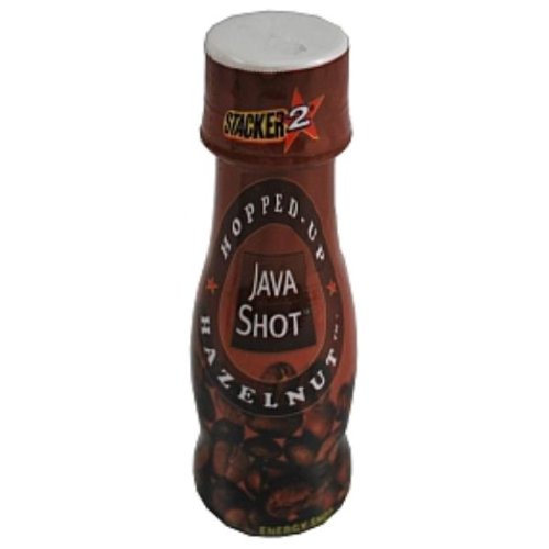 Stacker2Java Shot Hopped Up Hazelnut Energy Drink. 3 fl oz hazelnut flavor energy drink in travel size plastic bottle. Case Pack 36